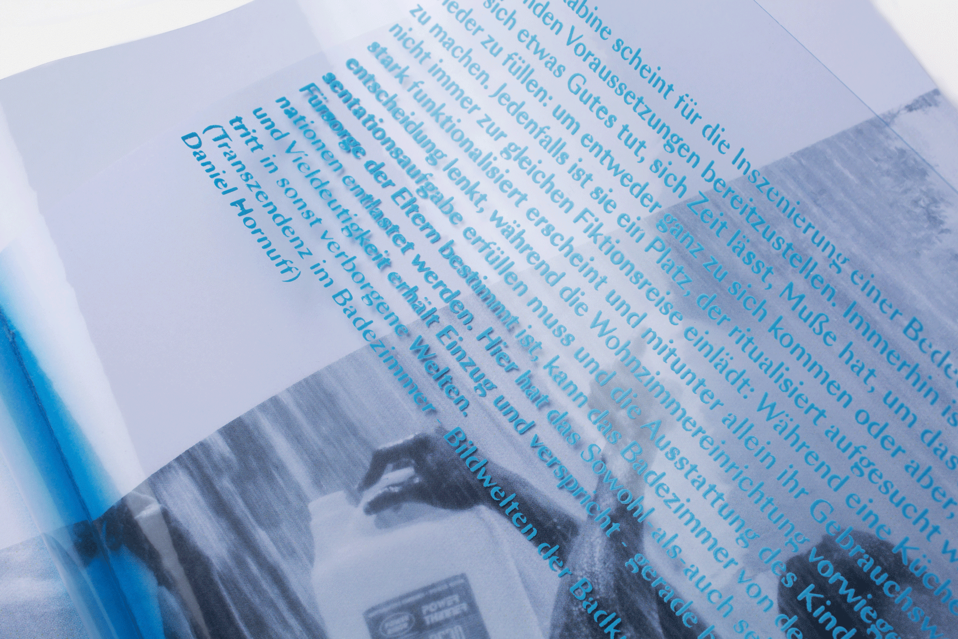 Freedom lies in movement, in the flow, in the expanse. It requires braveness and vastness, diving into the unknown. But we seem to feel free if we have the option of swimming in the sea, still racing back and forth in water full of chlorine. This photobook attempts to thematize the interplay between freedom and lack of freedom and to express it metaphorically with moving and standing water.